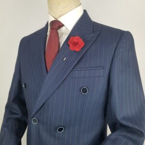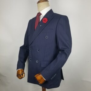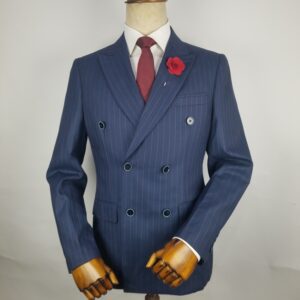 Navy Blue Double breasted Suit with Invincible Pin Stripes