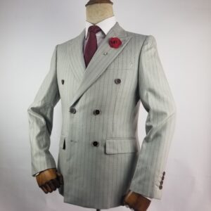 Biege Double Breasted Suit with Coffee Pin Stripes